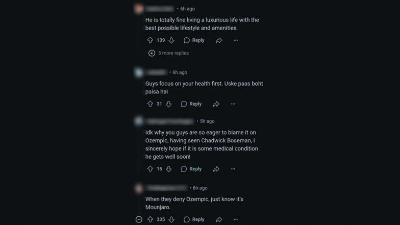A user wrote, "Idk why you guys are so eager to blame it on Ozempic, having seen Chadwick Boseman, I sincerely hope if it is some medical condition, he gets well soon." Another user wrote, "When they deny ozempic, just know its mounjaro." Lizzo Weight Loss: Rapper Shuts Down ‘Ozempic Allegations’ and Stuns Fans With Her Transformation (View Pics).