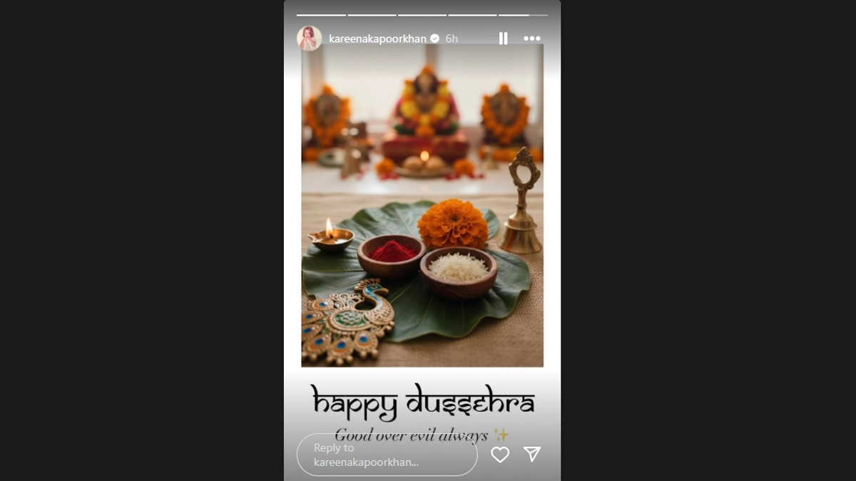 Mumbai, October 2: Bollywood celebrities such as Kareena Kapoor, Malaika Arora, Arjun Kapoor, Vidya Balan and Akshay Kumar among others took to social media to extend their greetings on the festive occasion of Dussehra. Stars shared heartfelt messages and festive wishes, celebrating the triumph of good over evil. Taking to her Instagram stories, Bebo posted a photo thar read, “Happy Dussehra good over evil always.”