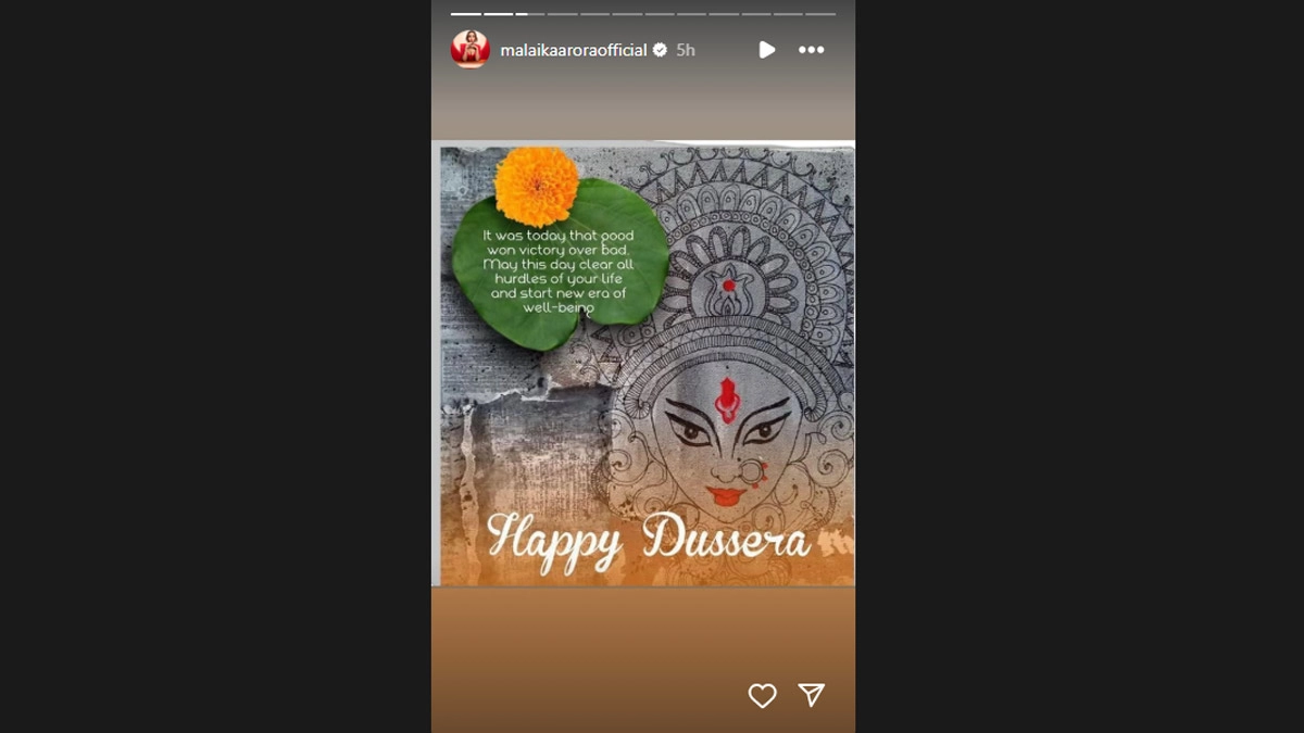 Arjun Kapoor posted an image featuring Lord Ram and wrote, “To strength, courage and endless new beginnings! Happy Dussehra everyone.” Taking to her Instagram Stories, Malaika shared an image that read, “it was today thar good won victory over bad. May this day clear all hurdles of your life and start new era of well-being Happy Dussera.” (sic)