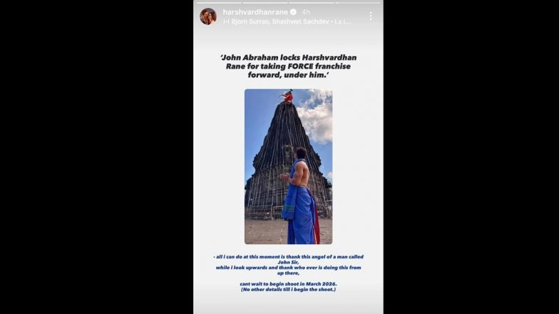 Actor Harshvardhan Rane, who is witnessing landslide success at the box office with his recent film Ek Deewane ki Deewaniyat, has been inducted into the Force franchise. The actor is set to start filming for the film from March 2026. On Wednesday, the actor took to the Stories section of his Instagram, and shared a picture of himself seeking blessings at the Trimbakeshwar Temple near the holy city of Nashik in Maharashtra. ‘Sorry Sir, Will Work…’: Harshvardhan Rane Apologises to Netizen Who Slammed Him for Comparing ‘Sh*thole’ ‘Ek Deewane Ki Deewaniyat’ With Ahaan Panday’s Hit Romance Film ‘Saiyaara’.