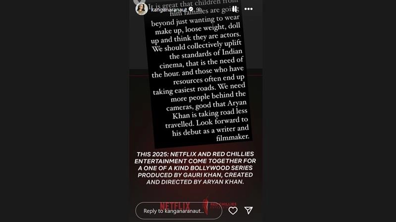 Kangana took to her stories section, where she shared a snapshot of the announcement and captioned it: “It is great that children from film families are going beyond just wanting to wear make up, loose weight, doll up and think they are actors.”