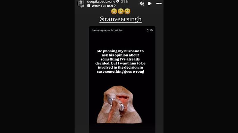 Deepika Padukone has offered a glimpse into her adorable equation with her husband, actor Ranveer Singh. Taking to her Instagram story, Deepika shared a hilarious meme post about a husband-and-wife duo that has everyone's attention. "Me phoning my husband to ask his opinion about something I've already decided, but I want him to be involved in the decision in case something goes wrong," the meme read. The Piku star tagged her husband in the story, adding smiling face emojis. Deepika Padukone Dazzles in Red at Cartier High Jewellery Event in Sweden’s Stockholm Amid ‘Spirit’ Controversy (See Pics)
