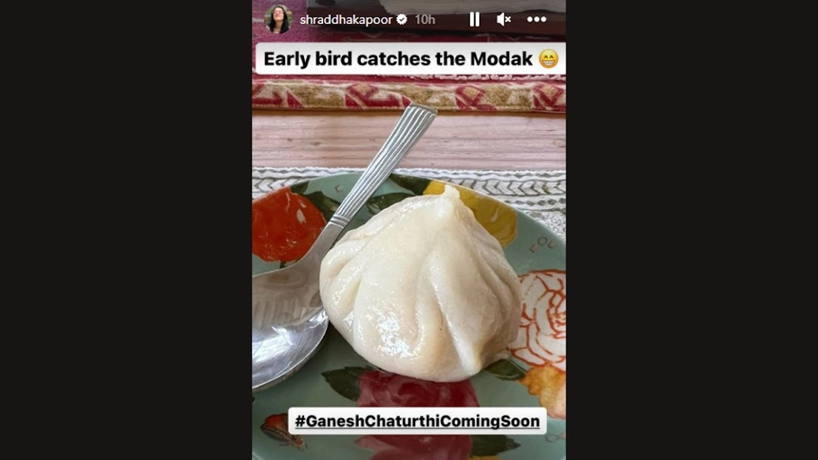 As Ganesh Chaturthi is around the corner, actor Shraddha Kapoor can’t keep calm to celebrate the festival. The actor on Tuesday got a chance to grab a bite of delicious modak ahead of the festival. Taking to Instagram story, Shraddha shared a picture of her Modak and captioned it, “Early bird catches the Modak. #GaneshChaturthiComingSoon.” Shraddha Kapoor's Weekend Playlist Includes 'Ya Ali' Track, Calls It 'Magic'.