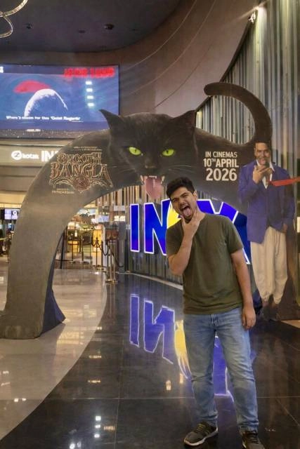 Excited Theatre Audience Poses Next to ‘Bhooth Bangla’ Posters
