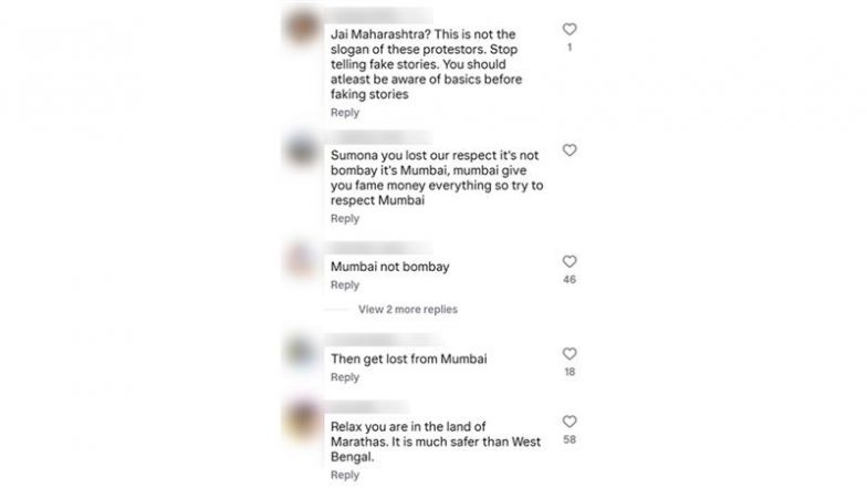 Reacting to Sumona Chakravarti's post, netizens shared their opinions. While a few slammed the actress, suggesting she should leave the city if she has no trust left in its law and order and feels unsafe, others genuinely expressed concern for her safety and advised her to register a complaint with the concerned authorities. Many even noted how she wrote “Bombay” instead of “Mumbai." Maratha Morcha in Mumbai: Manoj Jarange Patil Granted Permission To Extend ‘Maratha Reservation’ Protest at Azad Maidan for 1 More Day.