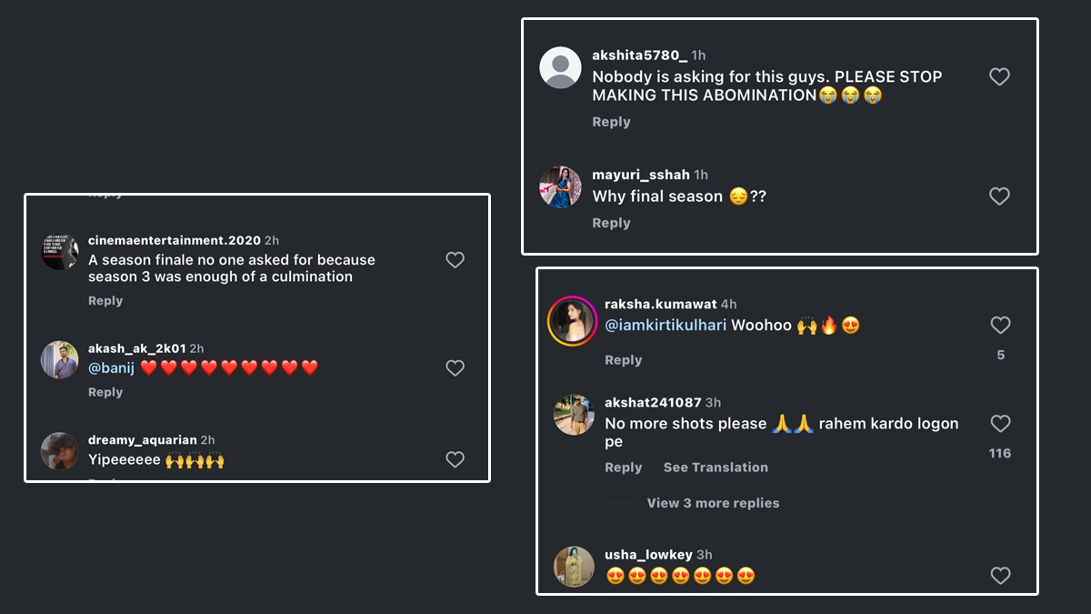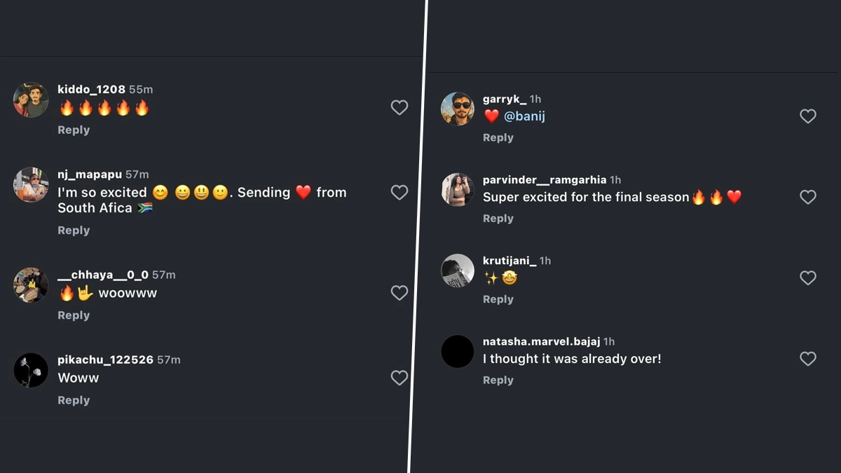 Fans were quick to react in the comments section, and the responses were full of emotion—some excited, some not so much. One enthusiastic fan wrote, “Omg, can’t wait.” Another added, “Can’t wait, super excited!” A user gushed, “Woohoooo! My FAV Indian Series on Prime!!!” One fan even chimed in from across the globe: “I’m so excited. Sending love from South Africa.”