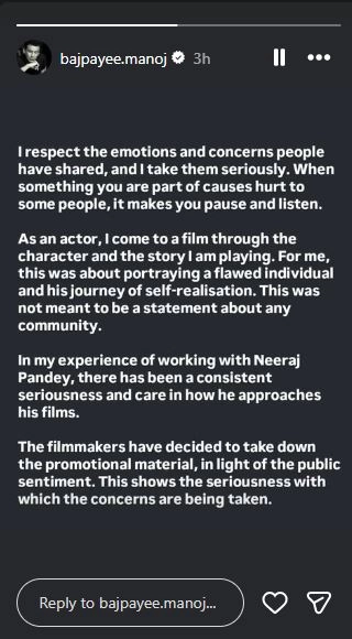 He wrote on the photo-sharing app, "I respect the emotions and concerns people have shared, and I take them seriously. When something you are part of causes hurt to some people, it makes you pause and listen. As an actor, I come to a film through the character and the story I am playing. For me, this was about portraying a flawed individual and his journey of self realisation. This was not meant to be a statement about any community. (sic)." ‘Ghooskhor Pandat’ Title Controversy: Neeraj Pandey Takes Down Film’s Promotional Material, Issues Statement (See Post).