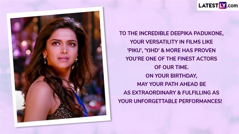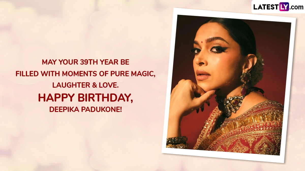 Deepika Padukone (born on January 5, 1986) celebrates her 39th birthday today. Her Bollywood journey has been extraordinary, beginning with her debut in Om Shanti Om (2007). Known for her versatility, she has impressed in films like Chennai Express (2013), Tamasha (2015), Padmaavat (2018), Chhapaak (2020), Pathaan (2023), Kalki 2898 AD (2024), among others, earning both critical acclaim and commercial success. Beyond acting, Deepika advocates for mental health, founding the Live Love Laugh Foundation after overcoming depression. Just in case you're looking for greetings/messages to wish Deepika on her birthday, fret not— we've got you covered. Deepika Padukone’s LLL Foundation Completes 10 Years, Promises More Impact in Mental Health Awareness; Actress Says, ‘I Look Forward to the Next Chapter in My Mission’ (Watch Video).