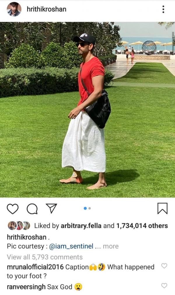 Check Out Ranveer's Reply On Hrithik's Photo Below: