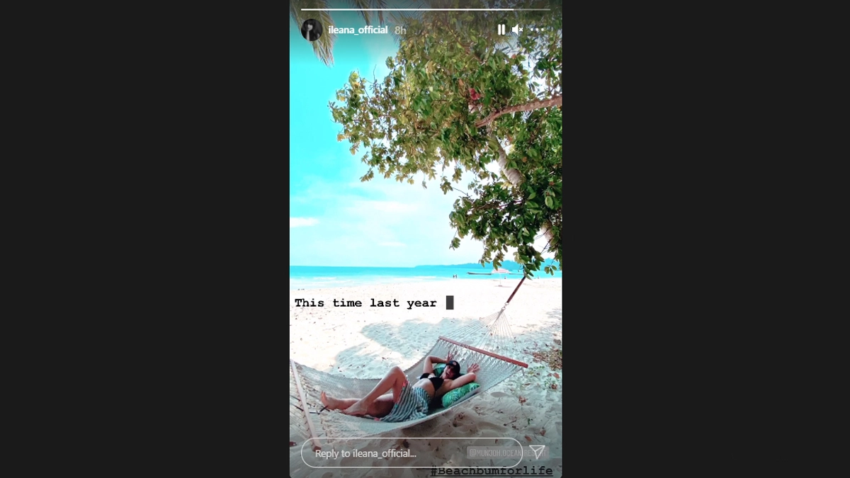 Bollywood actress Ileana DCruz on Thursday shared a twist of nostalgia from her holiday this time last year, in the process confessing she is a beach bum for life. Ileana posted the picture on Instagram Stories, where she is seen lying in a hammock wearing black swimsuit, against the backdrop of a blue sea. Ileana D’Cruz Shares Stunning Photo from Her Vacation at the Andaman Islands.