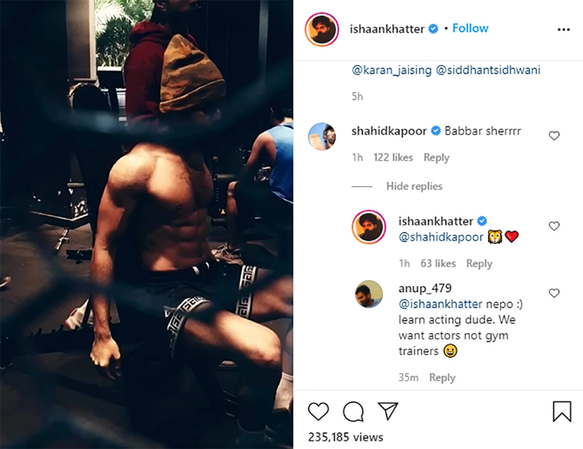 On the work front, Ishaan will next be seen in "Khaali Peeli", set to release digitally on October 2. The film was earlier scheduled to release in June this year, but has been delayed owing to the Covid-19 pandemic that led to closure of cinema halls. Directed by Maqbool Khan, the romantic action drama "Khaali Peeli" co-stars Ananya Panday.