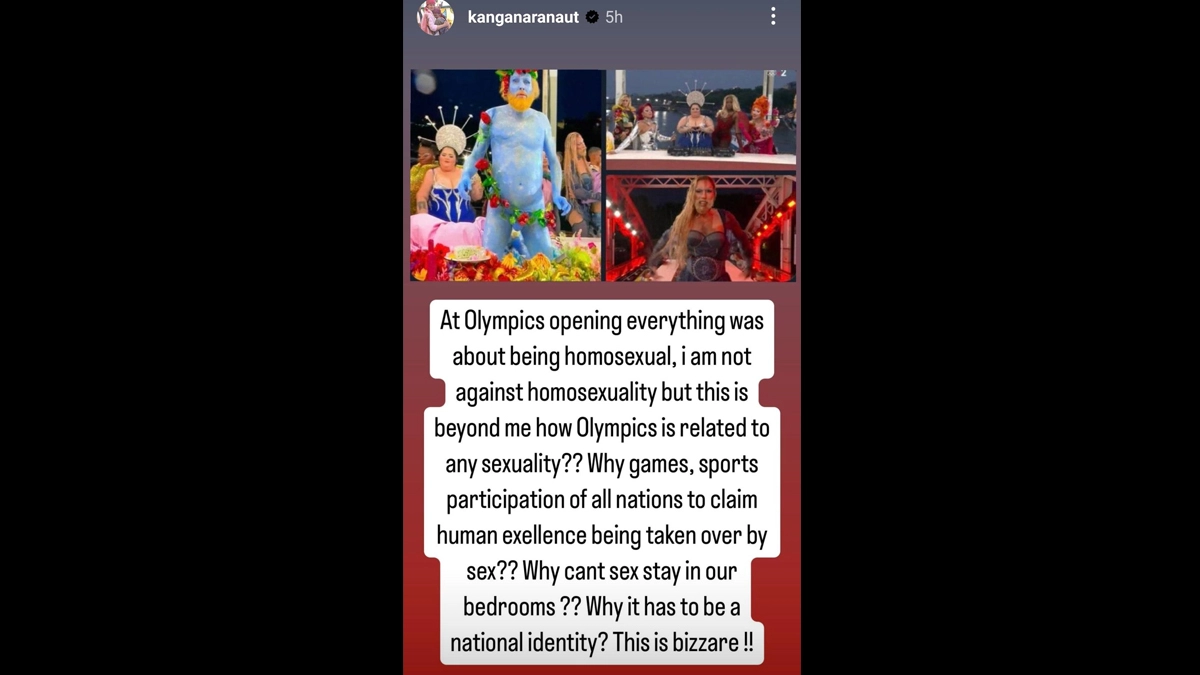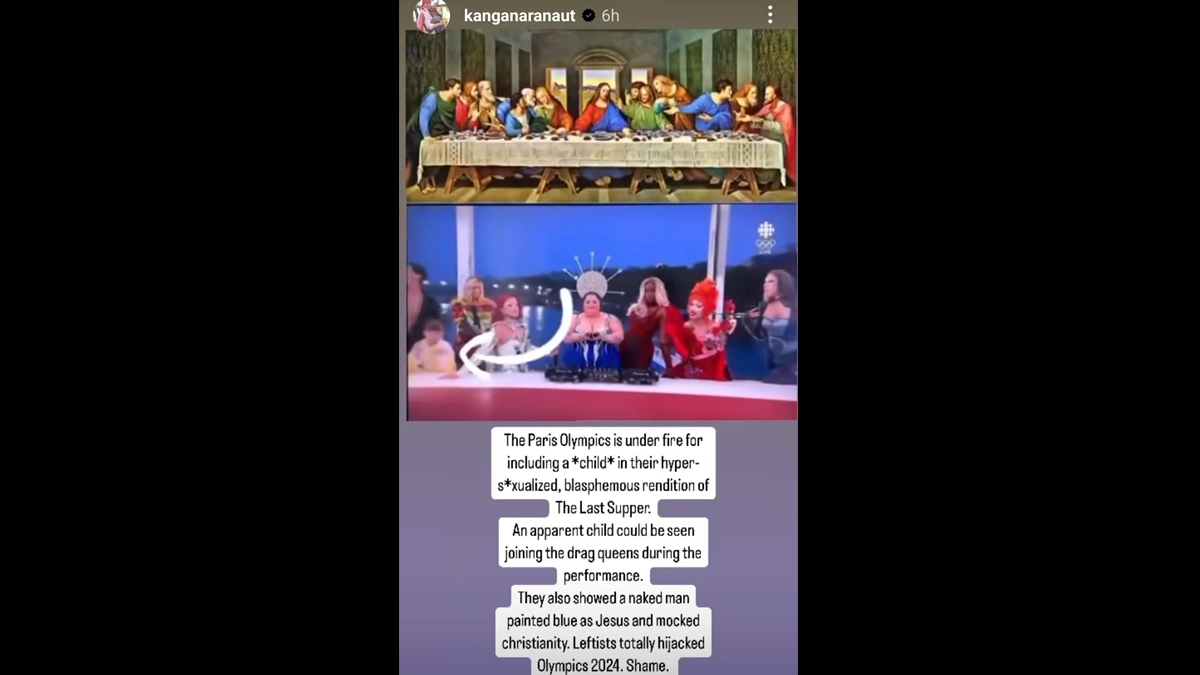 Kangana took to Instagram to voice her discontent, posting images and videos from the event. In her Instagram Story, she remarked, "The Paris Olympics is under fire for including a child in their hyper-sexualised, blasphemous rendition of The Last Supper. An apparent child could be seen joining the drag queens during the performance. They also showed a naked man painted blue as Jesus and mocked Christianity. Leftists totally hijacked Olympics 2024. Shame (sic)." ‘Aap Desi Johnny Depp Ho’: Kangana Ranaut Defends YouTuber Ajeet Bharti After FIR Registered Against Him Over ‘Fake News’ on Rahul Gandhi.
