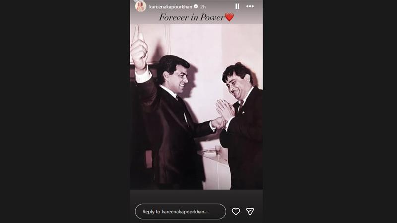 Kareena took to her Instagram stories, where she shared two black and white pictures to pay a tribute. The first image had the two late stars hugging each other, which Kareena captioned with a “red heart.”
