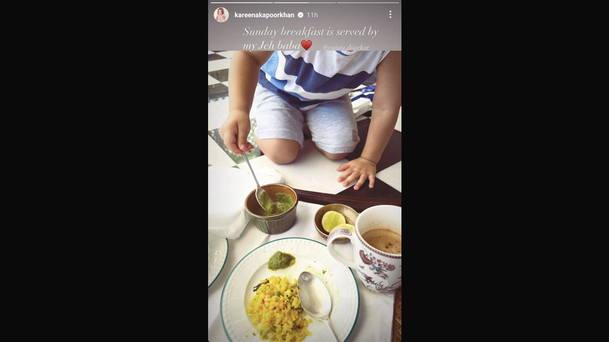 It is a happy Sunday for Bollywood diva Kareena Kapoor Khan as her younger son Jehangir served her breakfast. Taking to her Instagram Stories on Sunday, Kareena posted a photo where only Jeh's tiny hands are visible along with a plate of poha, coffee and coriander chutney. He is seen serving the chutney on her plate. Kareena Kapoor Khan Kissing Her Son Jeh Is the Cutest Pic You Will See on the Internet.