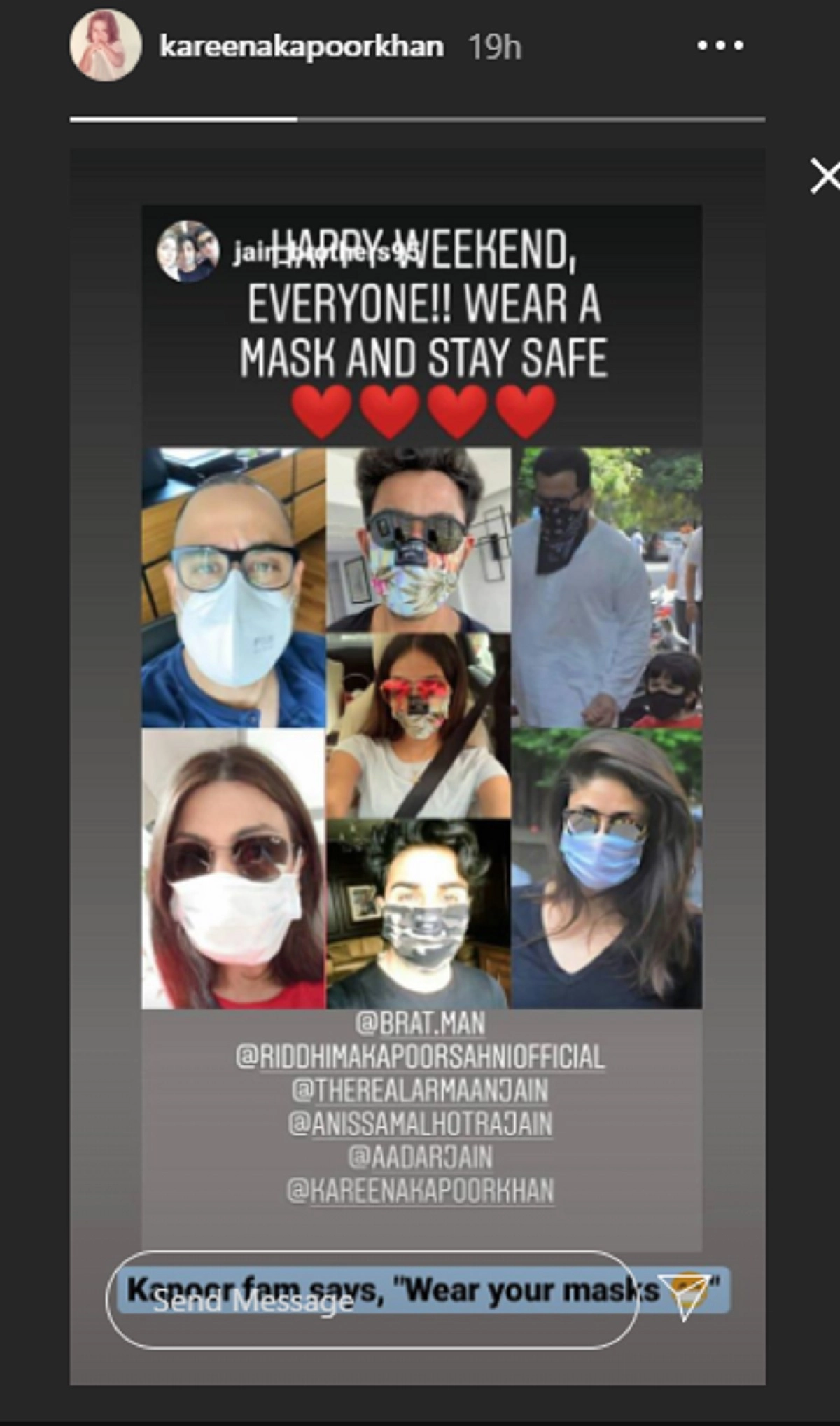 Kareena Kapoor's friends namely Karan Johar and others had disclosed that the actress stalks people on social media even when she didn't have an account on any of them. Later she joined and we realised how active she could be on the photo-sharing app Instagram. We are glad she finally paid heed to her friends' request and joined it. Nowadays, she is quite popular in it. Yesterday she shared a picture of the Kapoor family wearing masks and wished everyone Happy Weekend. Kareena Kapoor Completes 20 Years: Here’s The Ultimate Bebo Playlist of 20 Awesome Songs