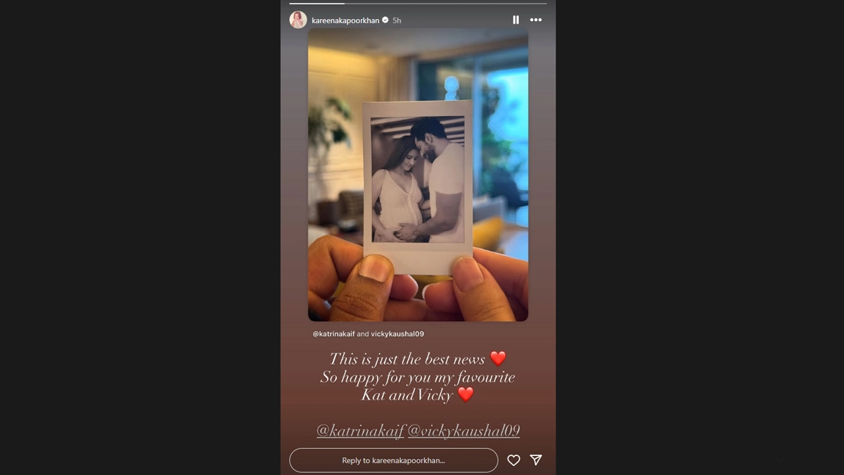 Kareena Kapoor took to social media to express her excitement over Katrina Kaif’s pregnancy, calling it the “best news.” Taking to her Instagram Stories, Bebo posted the same picture that Katrina and Vicky Kaushal shared to announce the happy news and extended her wishes. Alongside the image, Kareena wrote, “This is just the best news, So happy for you my favourite Kat and Vicky,” followed by a red heart emoji. Katrina Kaif and Vicky Kaushal Pregnancy: Bollywood Stars Ananya Panday, Janhvi Kapoor, Parineeti Chopra and Others Shower Love and Congratulations on Soon-To-Be Parents.