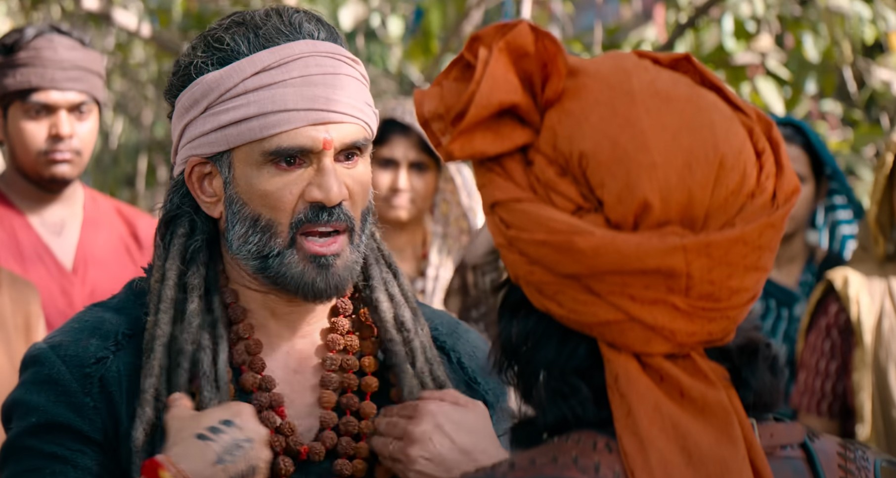 Then there’s Vegdaji Bhil (Suniel Shetty), the chieftain of a nearby village and a devout Shiv bhakt. His daughter, Rajal (Akansha Sharma), is in love with Hamirji. Vegdaji eventually joins Hamirji’s army to protect the temple. Historically, Khan succeeded in destroying Somnath and established his Sultanate before dying of old age. In the film, though…