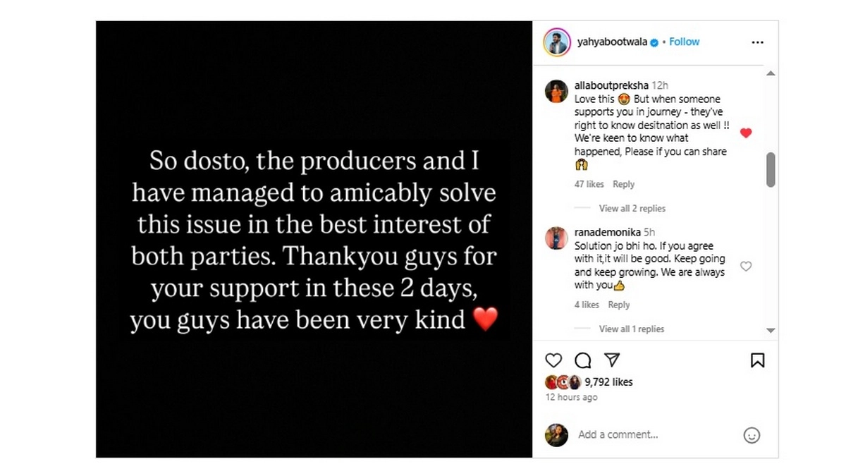 “As writers, the worst thing you can do to a fellow writer is pick their material up, blatantly use it without giving credits, and this is what I feel dialogue writer @sumit.saxena.35912 has done here. If you’ve ever felt attached to my work, please tag @karanjohar @karanstyagi @dharmamovies @akshaykumar and @ananyapanday so that this reaches them," he had added. As per reports, Yahya Bootwala had further written on his Instagram stories, “Sumit Saxena. I am sure you know this. The worst you can do as a writer is steal some other writer’s work without crediting them for it."