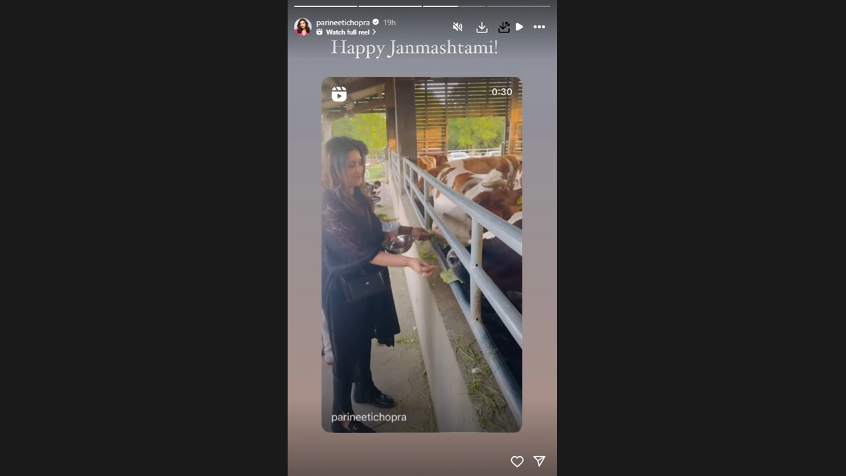 Now, Parineeti has again shared the video on her Stories section and wrote: "Happy Janmashtami".