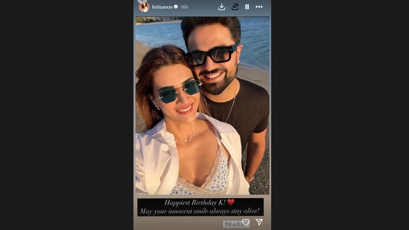 Bollywood actress Kriti Sanon, who was recently seen in a dual role in the streaming movie Do Patti, is celebrating her rumoured boyfriend Kabir Bahia. On Tuesday, the actress took to the Stories section of her Instagram, and shared a picture with Kabir as she wished him on his birthday. She wrote on the picture, “Happiest Birthday K! May your innocent smile always stay alive! @k.a.b.b.s”. Kriti Sanon Turns Heads in Vibrant Crocheted Cropped Top and Skirt With Thigh-High Slit While Holidaying in Stunning Greek Island Santorini.