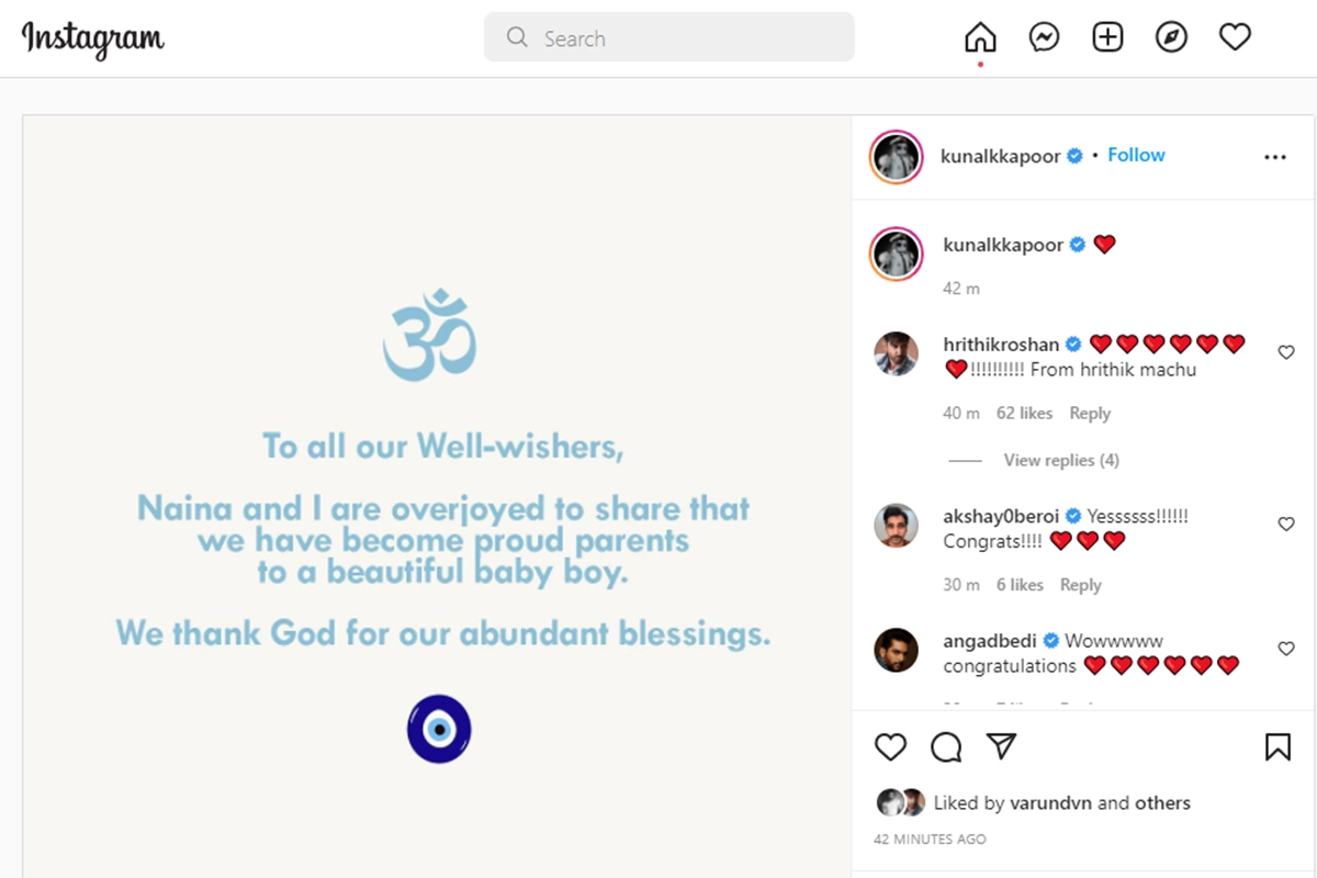 Kunal Kapoor and wife Naina Bachchan welcomed their first child on January 31. Kunal revealed that it's a baby boy as he shared an official statement on social media. He wrote, "To all our Well-wishers, Naina and I are overjoyed to share that we have become proud parents to a beautiful baby boy. We thank God for our abundant blessings." FYI, Naina is the niece of veteran actor Amitabh Bachchan.