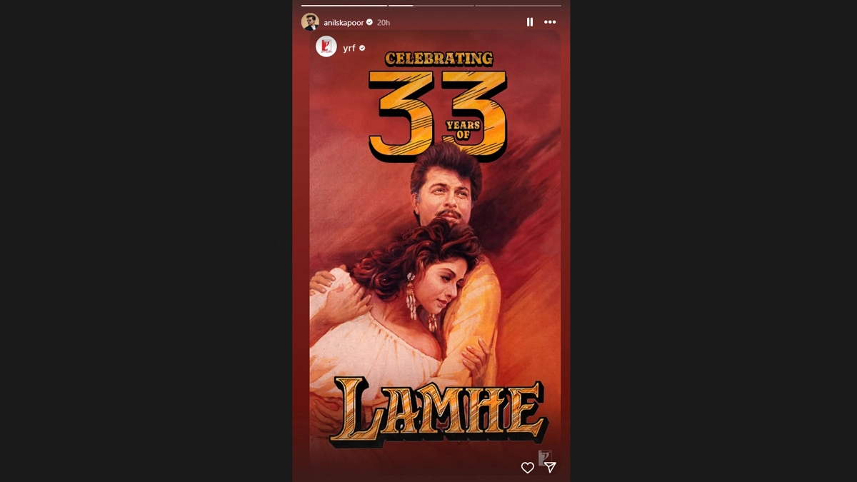 “To this day, I'm proud to say it remains one of his finest works, and I'm deeply honored to have been a part of it. Here's to the unforgettable memories and the timeless legacy of Lamhe! #33yearsofLamhe,” Anil concluded.
