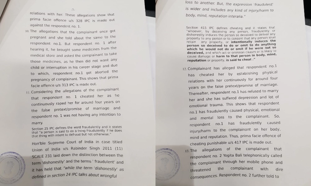 The two have been charged on rape, cheating and causing miscarriage without consent: