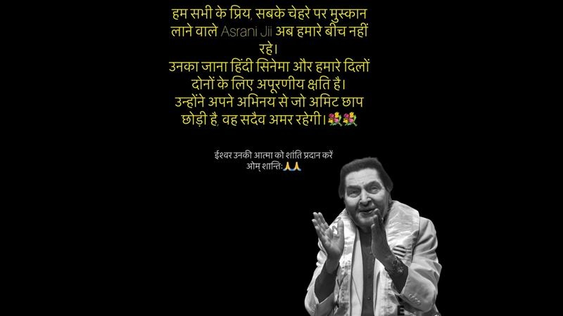 Asrani, whose career spanned over five decades, was best known for his memorable performances in classics like Sholay, Chupke Chupke, Aaj Ki Taaza Khabar and Amar Akbar Anthony. His impeccable comic timing and distinctive style made him one of the most loved actors of Indian cinema.