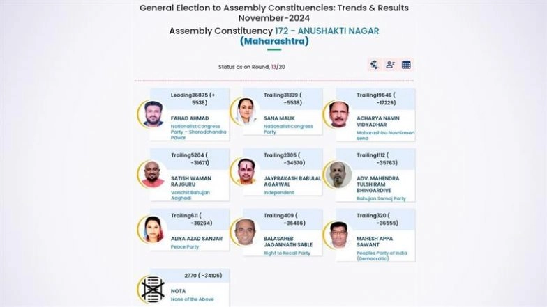 Fahad Ahmad, who was formerly with the Samajwadi Party and served as the state president of its youth wing, Samajwadi Yuvjan Sabha, joined NCP in October. In previous years, Anushakti Nagar has seen close battles, with NCP's Nawab Malik claiming the win in 2019 with 65,217 votes, defeating Shiv Sena's Tukarama Ramkrushna Kate. In 2014, Kate secured the victory by a mere 1007 vote margin. This time, NCP fielded Nawab Malik's daughter, Sana Malik, in Anushakti Nagar, where she trails behind Fahad Ahmad with 31,339 votes. Maharashtra Assembly Elections Result 2024: NCP's Sana Malik Leads in Anushakti Nagar by 3,979 Votes.