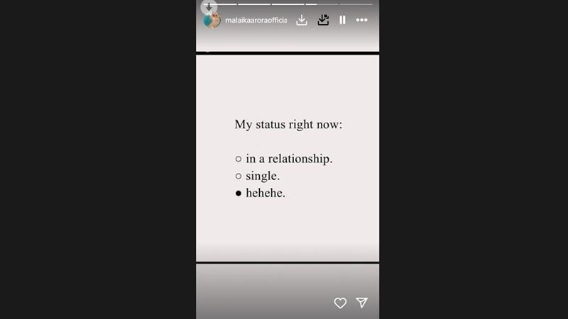 Dancing diva and actress Malaika Arora has finally revealed her current relationship status with a hilarious cryptic post on social media. Malaika took to Instagram stories, where she shared a meme which read: “My relationship status right now”. Malaika Arora In Love Again? Actress Holds Hands with Mystery Man After Breakup with Ex-Boyfriend Arjun Kapoor (Watch Video).