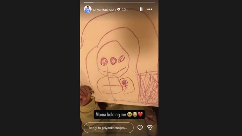 Priyanka took to the Stories section of her Instagram handle and posted the photo of an adorable drawing by Malti of her and her mother. Uploading the sweet drawing on social media, the Barfi actress wrote, "Mama holding me", followed by teary-eyed, crying, and red heart emojis.