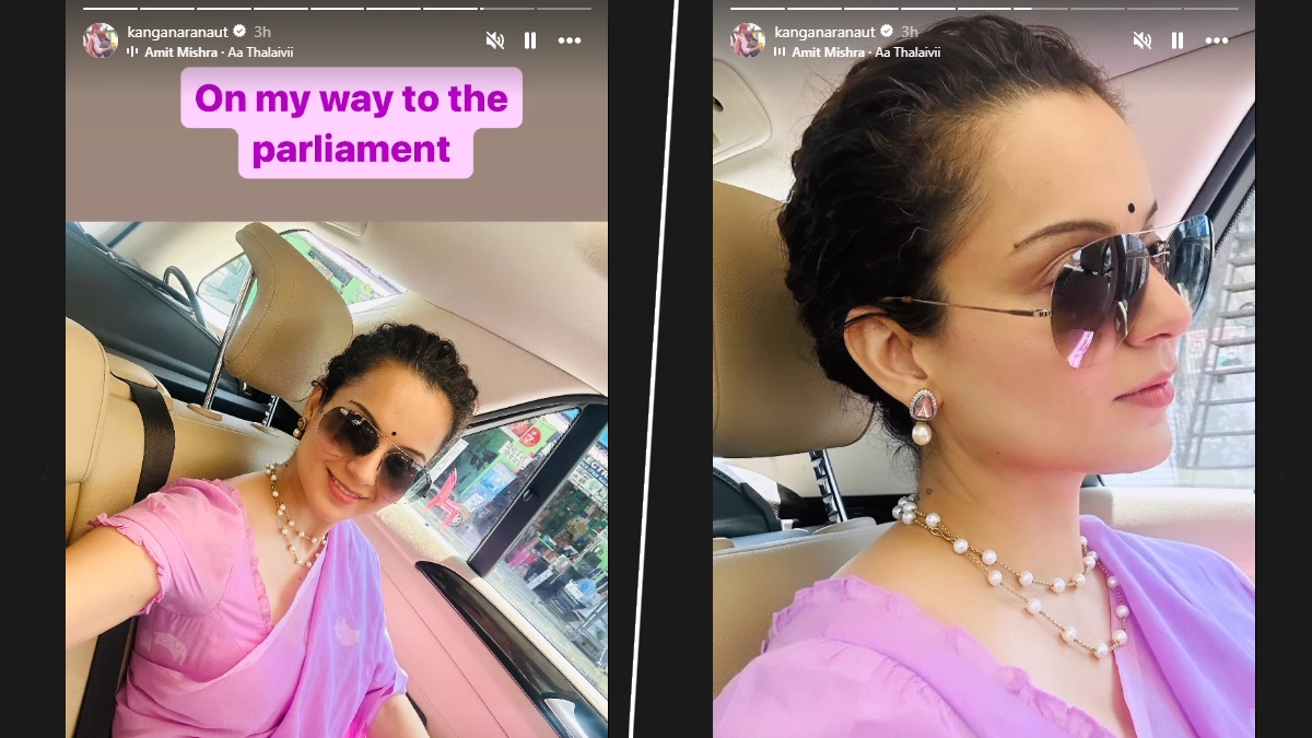 Bollywood actress Kangana Ranaut, who has been elected as the Member of Parliament from the Mandi Lok Sabha constituency, is heading to Delhi. On Thursday (June 6), the actress took to the Stories section of her Instagram, and shared a picture of herself sitting in her car and travelling to Delhi. She wrote on the picture, "On my way to the Parliament. Mandi ki sansad (sic)." Kangana Ranaut Wins From Mandi in Lok Sabha Elections 2024; Will She Bid Farewell to Acting After Entering Politics?