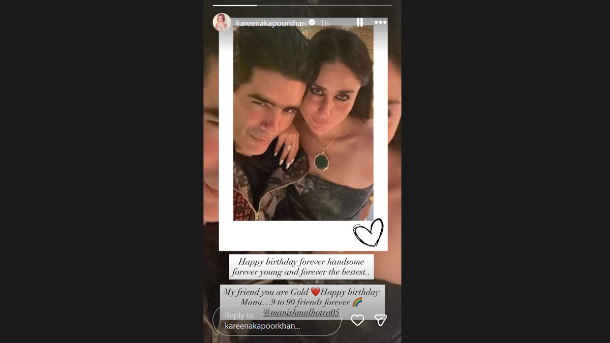 Taking to her stories section on Instagram, Kareena shared a selfie with Manish, who stepped into producing films with Gustaakh Ishq.
