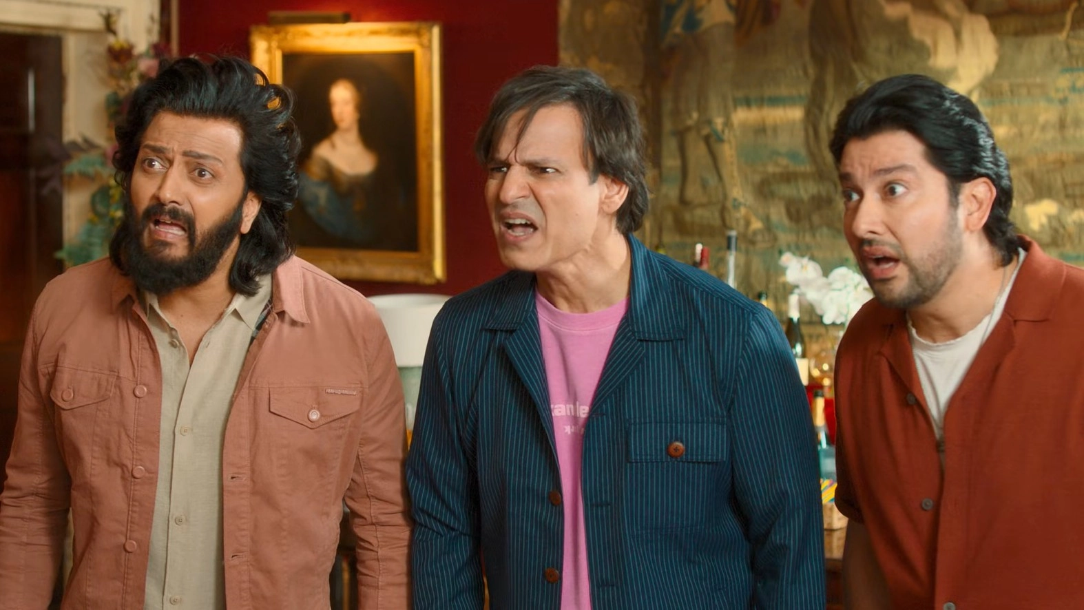 The plot is loosely based on the 2011 Owen Wilson–Jason Sudeikis comedy Hall Pass, with traces of the first Masti film. Riteish Deshmukh (looking far too serious for this madness with his bearded look), Vivek Oberoi (reminding you again of his spectacular career downfall) and Aftab Shivdasani (who admirably maintains the same set of expressions across the franchise) return as Amar, Meet and Prem. Amar is a 'master mater' - a job I hope was invented purely for this film (I am terrified to Google it) - someone who works at a zoo encouraging animals to mate. Meet is a car dealer, Prem a wellness expert, and somehow all three afford massive mansions in London. Let’s not waste time asking how.