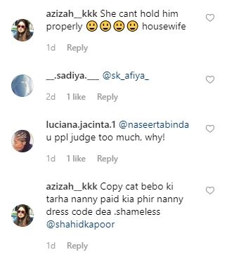 In a video shared by Manav Manglani, Shahid, Mira and the two kids were spotted at the airport, on their way to Tussauds. However, what caught the fans’ attention was Taimur’s nanny, who was also seen with them. Soon comments started pouring, criticising Mira for copying Kareena Kapoor Khan. While someone called her a copy-cat, another user commented on her for not carrying Zain properly.
