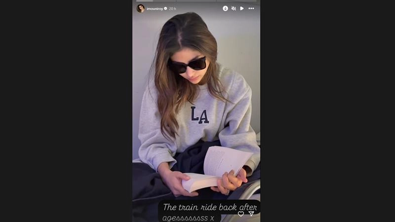 In the clip, Mouni Roy can be seen oozing charm in a comfy sweatshirt and black sunglasses as she reads a book. She captioned the post, "The train ride back after agessssss". The Brahmastra actress was seen having a gala time on the upper berth of the train.
