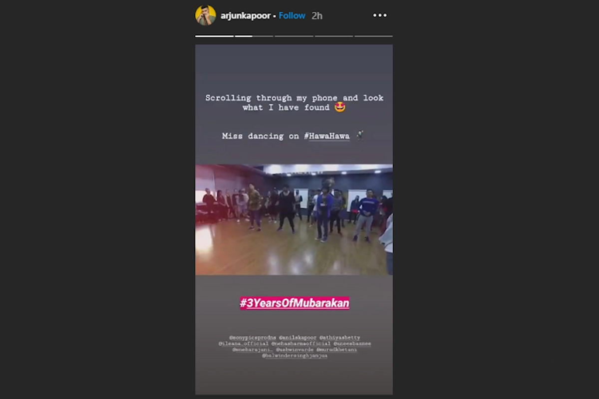 Actor Arjun Kapoor on Tuesday went down the memory lane and shared a throwback video from the shooting of Mubarakan, which was released three years back. Taking to Instagram stories, Arjun posted the clip in which we can see him practicing on "Hawa Hawa" song from "Mubarakan". "Scrolling through my phone and look what I found. Miss dancing on 'Hawa hawa'. 3 years of Mubarakan," Arjun shared. Indu Sarkar Clocks 3 Years: Kirti Kulhari Gets Nostalgic About Madhur Bhandarkar Film on Emergency