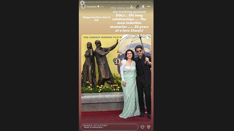 Karan wrote on his Insta Stories, "My alma mater @yrf...my training ground DDLJ...life long relationships....The most indelible momories.....30 years of a love Classic."