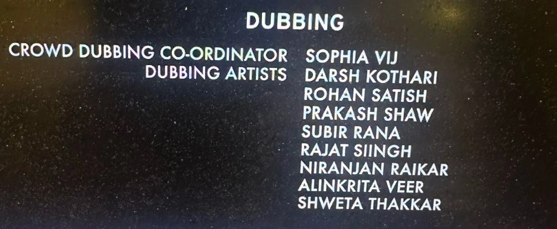 While the makers aren't forthcoming about who the dubbing artiste is, the artistes mentioned during the end credits are below.