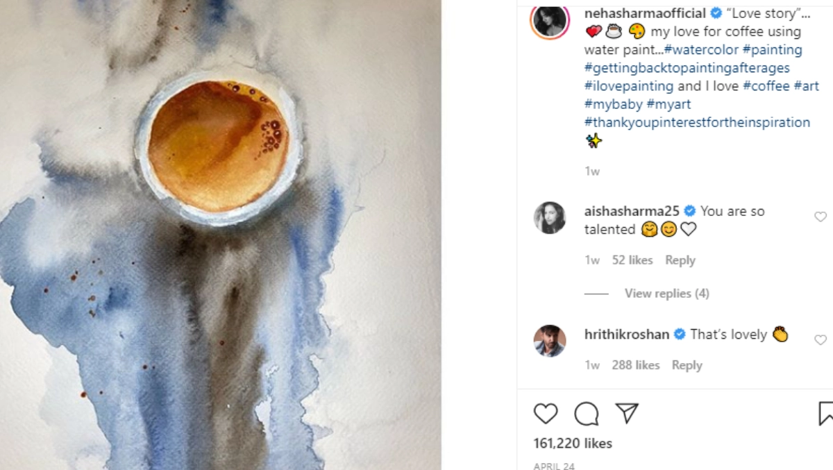 We all are finding ways to cope with the quarantine. Some have buried themselves in work or studies. Some have made it the aim to consume everything on Netflix and in the refrigerator. And some, have revived old hobbies, like Neha Sharma. The beautiful actress introduced her fans to the fact that she is a beautiful painter as well. To keep herself occupied, the actress has taken to water colouring. She shared some of her artwork, and we are impressed. Not just us, even Hrithik Roshan has called her art 'lovely'. Neha has received appreciation from Arnoday Singh, Vikram Bhatt, and others as well on her paintings.