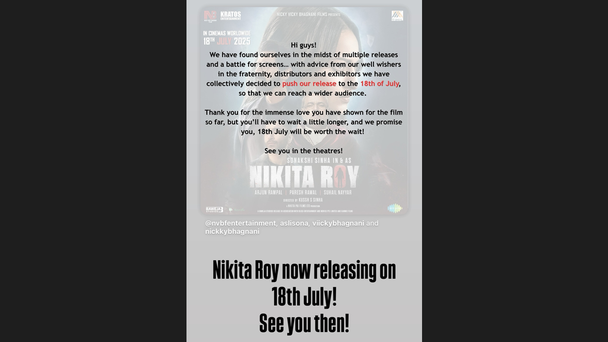 The statement read, “With advice from our well-wishers in the fraternity, distributors, and exhibitors, we have collectively decided to push our release to the 18th of July, so that we can reach a wider audience. Thank you for the immense love you have shown for the film so far but you’ll have to wait a little longer, and we promise you; 18th July will be worth the wait! See you in theatres”. The film is a supernatural thriller, and follows a gripping and mysterious narrative that promises to keep audiences on the edge of their seats. With high anticipation and strong audience interest already building through the film’s trailer and music, Nikita Roy is expected to be one of the most exciting genre releases of the year. ‘Nikita Roy’: Sonakshi Sinha Unveils Spine-Chilling New Song ‘Kaali Raatein’ From Her Upcoming Supernatural Thriller (Watch Video)
