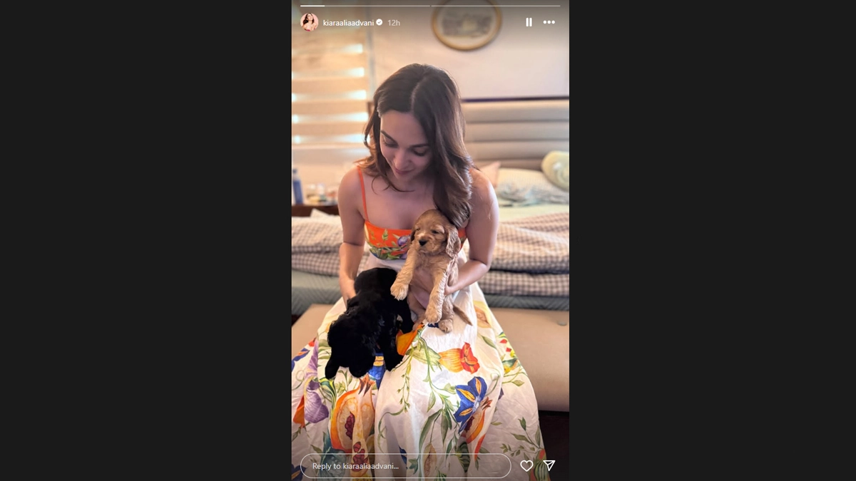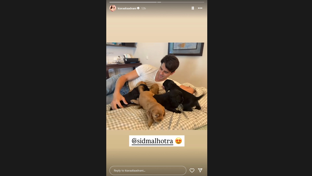 Bollywood actress Kiara Advani, who recently announced her pregnancy, took to social media to share a heartwarming moment of her actor husband Sidharth Malhotra. On Monday, the Kabir Singh actress posted a cute boomerang video of Sidharth where he is seen playing with little puppies. In the clip, the Ek Villain actor can be seen sitting on a bed and playing with cute little puppies. Kiara shared the clip, tagging the actor. She also posted a photo of herself wherein she is seen holding puppies on her lap. In the photo, Kiara is seen sitting and cradling two adorable puppies. Advani was captured in a candid moment, gazing away from the camera. Kiara Advani Radiates Joy As She Steps Out for First Time After Announcing Pregnancy, Looks Chic in All-White Co-Ord Set (Watch Video).
