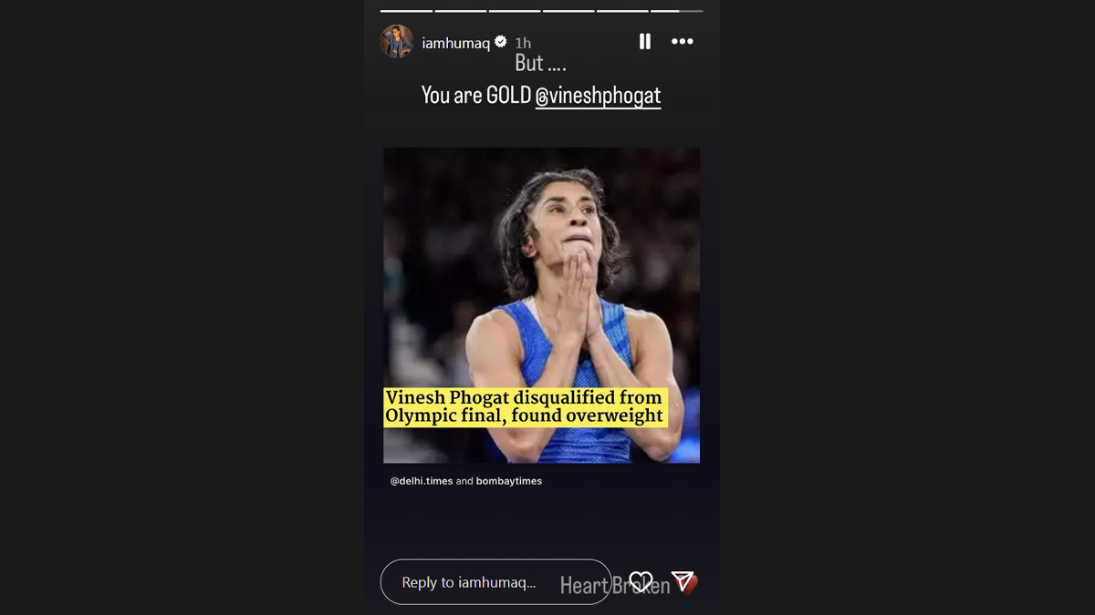 Taking to her Instagram stories, Huma shared a clipping of the news, Huma wrote: “But… You are GOLD @vineshphogat. Heart broken.”
