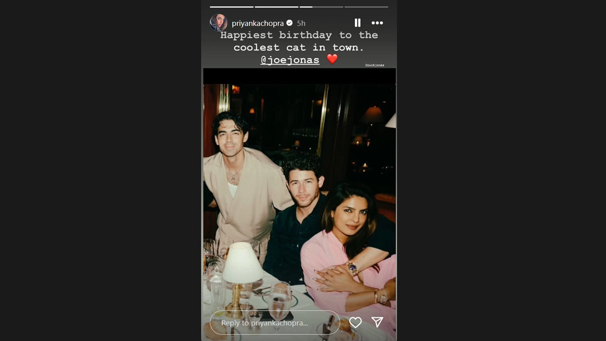 Indian actress Priyanka Chopra Jonas wished her brother-in-law, Joe Jonas, whom she referred to as the “coolest cat in town," on his 35th birthday. Priyanka took to her Instagram stories, where she posted a picture featuring her, her husband Nick Jonas, and Joe. In the image, Priyanka is seen wrapped around Nick’s arm, while Joe smiles at the camera for a pose. Priyanka Chopra Shares Throwback Pic of Herself With Katrina Kaif, Says ‘Dunno Who Took It’.