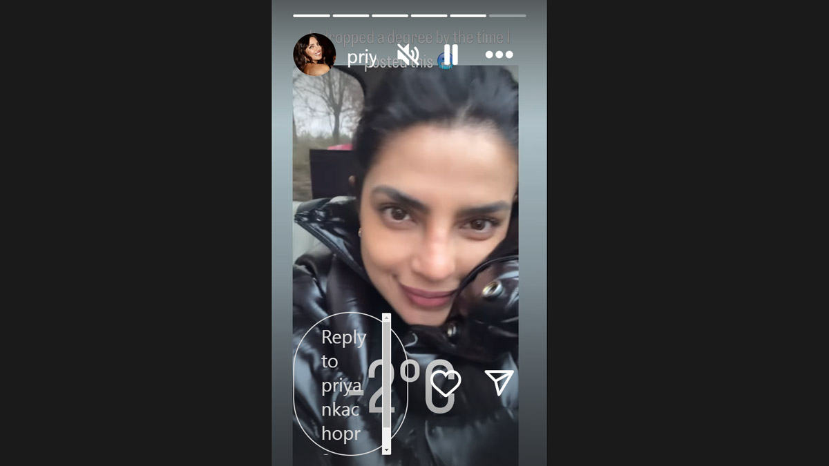 Global star Priyanka Chopra Jonas shared a video on social media from inside her car, capturing her drive through a foggy, icy landscape at a chilly -2°C. Taking to her Instagram stories, the desi girl posted a video wherein she is seen clad in cozy winter attire as she embraced the frosty weather with humor. In her caption, Priyanka highlighted the dropping temperatures, writing, “It dropped a degree by the time I posted this. -2°C.” She further quipped about the eerie vibe of her surroundings, adding, “Looks like I am driving in this creepy hollow.” Priyanka Chopra Shares Jackie Shroff’s Motivational Message on Work and Life Challenges on Her Instagram Stories.