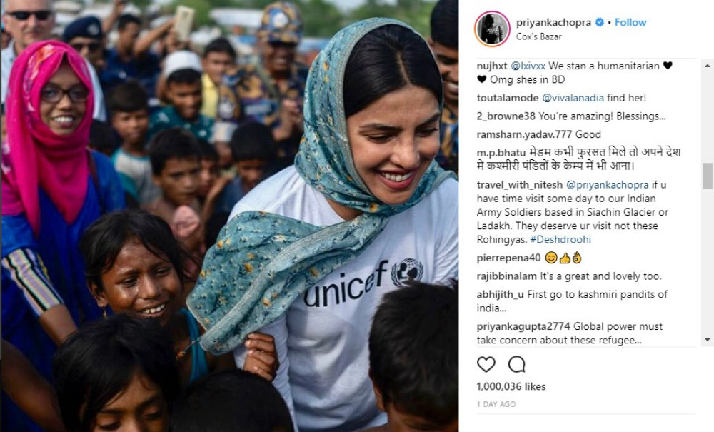 Priyanka Chopra is known for her contribution, not only in the showbiz industry but also in the social work. Continuing with her UNICEF trips, the actress recently visited Rohingya refugee camps in Bangladesh’s Cox's Bazar as a global UNICEF Goodwill Ambassador for Child Rights. She has been keeping us updated with her journey and the moments at these camps which are truly heart-warming. While PeeCee has been constantly emphasizing on the fact that the world needs to unite and heal, some of them are just too close-minded to get the whole point.