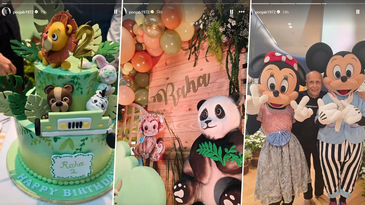 As stars Ranbir Kapoor and Alia Bhatt’s daughter turned 2 on Wednesday, grandmother Soni Razdan and ‘masi’ Pooja Bhatt shared a glimpse of the toddlers' jungle-themed birthday party. Pooja took to her Instagram stories, where she first shared a picture of the entrance, which had a monkey and a panda cut-out along with “Raha” written on it. Raha Kapoor Turns 2: Ranbir Kapoor’s Adorable Birthday Kiss for His Daughter; Neetu Kapoor Shares the Precious Moment (View Pic).