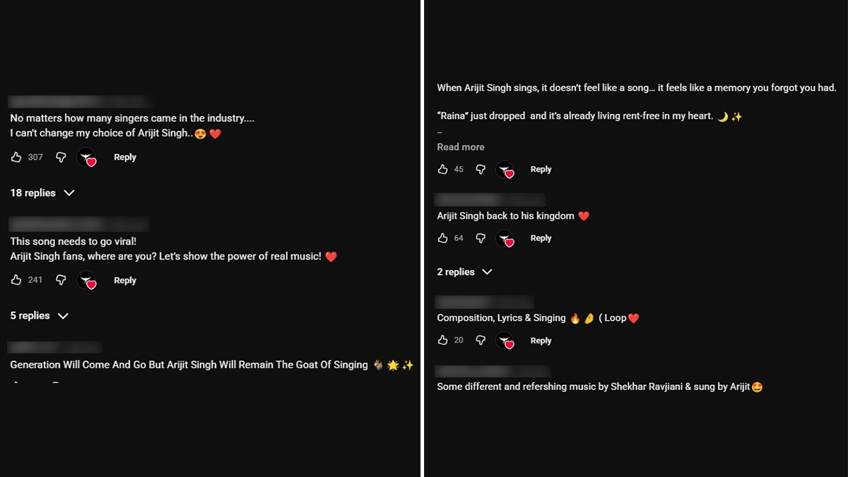 The response to Raina was instantaneous, with the comments section of the official video turning into a digital shrine for the singer’s legacy. One fan expressed the collective sentiment, writing, "Arijit Singh is best. No one can replace him in my life. He was, is, and will be my favourite singer forever." Another listener noted the evocative nature of his performance: "When Arijit Singh sings, it doesn’t feel like a song. It feels like a memory you forgot you had." Others praised the transition into independent music, with one fan stating, "Everything about this song is amazing. The composition and lyrics perfectly capture the melancholic nights, and Arijit's singing is giving it the perfect life."