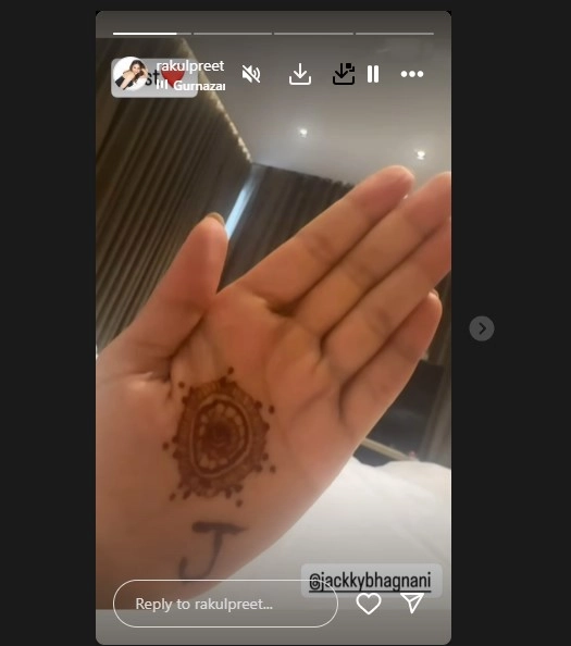 Mumbai, Oct 20: Actress Rakul Preet Singh, who is currently recovering from a back injury, is celebrating her first Karva Chauth while being on bed rest. On Sunday, the actress took to the Stories section of her Instagram, and shared a video showing her hands adorned with Henna. Sonakshi Sinha Observes Her First Karwa Chauth Vrat for Husband Zaheer Iqbal, Flaunts Exquisite Mangalsutra, Sindoor and Beautiful Red Saree (View Pics).