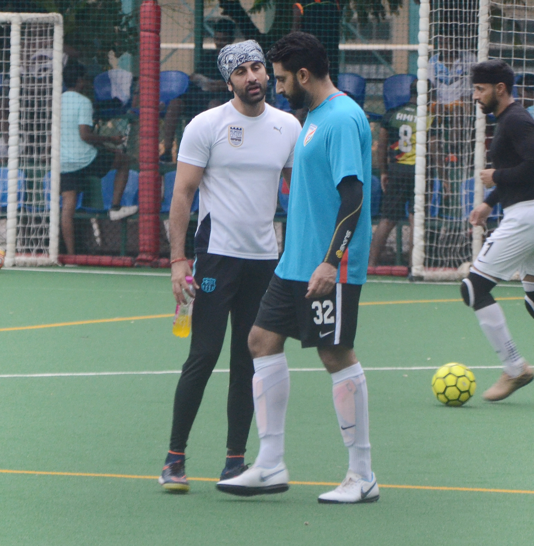 So despite the city being showered by the June monsoons, some of the stars have taken to the ground to play football. Ranbir Kapoor and Abhishek Bachchan were seen spotted playing the game, with Sikander Kher and Ranbir's Sanju co-star Jim Sarbh also joining. To our surprise, even the young Ishaan Khatter was also seen playing with the big boys. Ishaan, who made his debut with Beyond the Clouds earlier this year, will be seen next in Karan Johar's Dhadak.